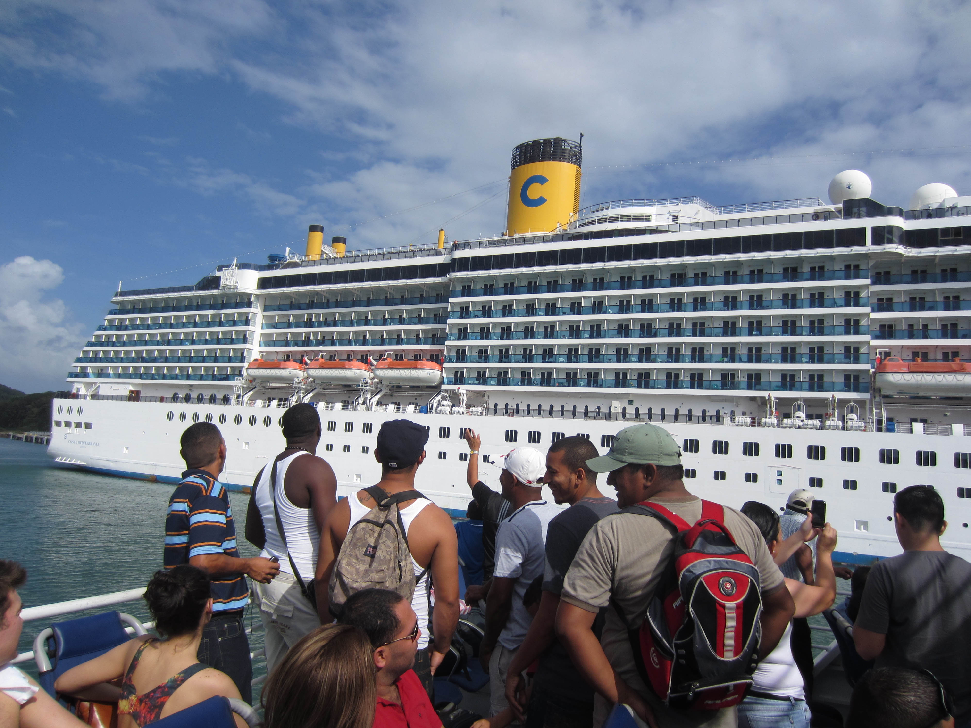 One of the cruise ships that comes weekly to port and brings in loads of tourists that help the economy yet overcrowd many of the attractions.