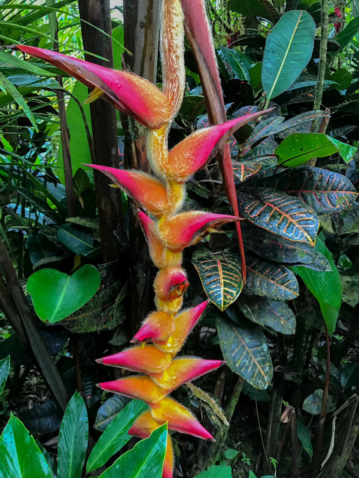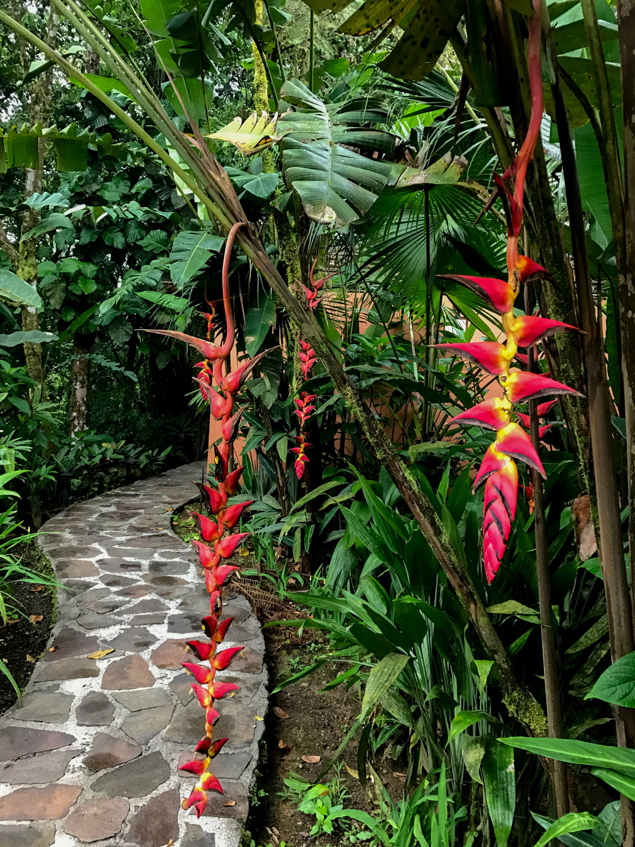 The grounds of the resort are lovely and filled with tropical flowers. I enjoyed walking around and looking for birds. We didn’t see any monkeys but did see a toucan and lots of smaller birds. I also encountered the friendly pizote (a racoon-like animal with a long tail) who lives near the gates of the resort next to the neighbors chickens. He didn’t seem the least bit surprised to see me.