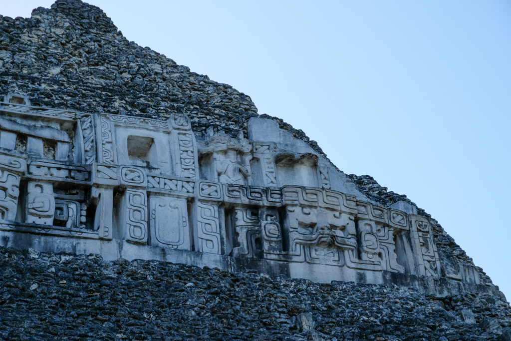 As you walk up the hill top, you enter the first plaza of ruins and it is quite spellbinding. We once again timed our visit right just like at Lamanai and had the entire place to ourselves. We had arrived two hours before closing time and that seemed like the perfect time to go despite the harsh angles of the sun for photos.