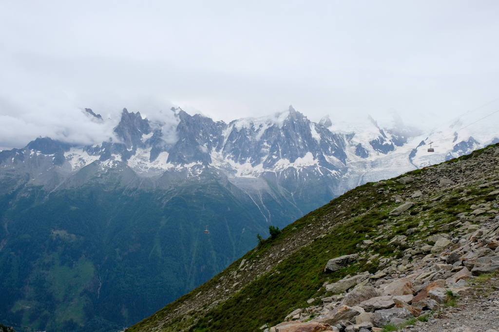 On our first full day in Chamonix, we opted for a shorter hike as the weather was unfortunately overcast and foggy. Despite knowing that the views would not be perfect, we decided to take the gondola lift up to Planpraz and then follow the steep hike up to the top of Le Brévent, which affords stunning views of the glaciers surrounding Mont Blanc. If only the weather had cooperated, this would have been an absolutely stellar hike and I deeply regret not taking the cable car back up for some photos on a clear day before we left Chamonix. Regardless, if you have three days in Chamonix, visiting the top of Le Brévent is a must as it gives you an incredible appreciation and perspective of not only the entire Chamonix Valley but of the Tour de Mont Blanc itself. On top of Le Brévent, you will delight in panoramic 360-degree views of it all and it will truly blow you away, even in the clouds.