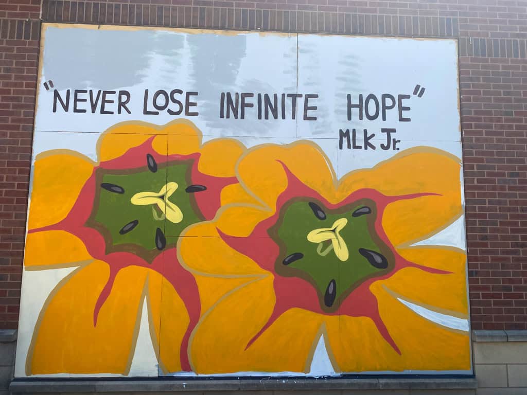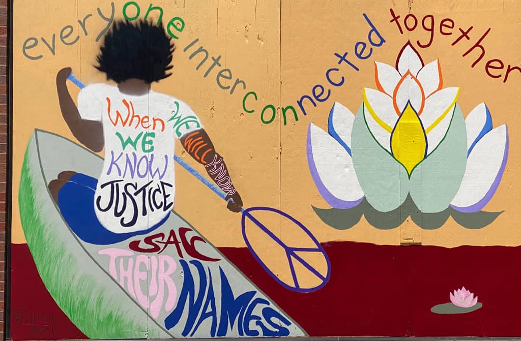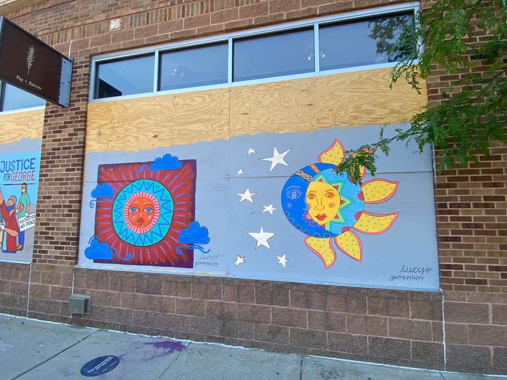 Without diving into all the social justice and moral issues of George Floyd’s death and the immense racial inequalities in our city, our country, and our world, I want to use this space as a living museum to document the incredible art that is going up on the boarded-up businesses around our city. Artists are using their voice to demand social justice, antiracism, systemic change, and hope by painting powerful murals all throughout Minneapolis.