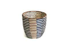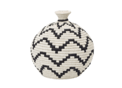 Zig Zag Black and White Vase: Intricately crafted with timeless tradition, this carefully dyed sisal fiber and sweet grass round vase makes a stunning statement piece. $180. 6″ Brown and Black Checkered Planter: $44. Tiny Floret Open Weave Catch All: $20.