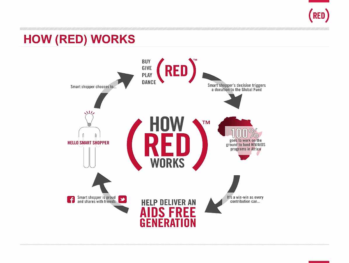 Here is an example of how (RED) works on the back end to fight AIDS.