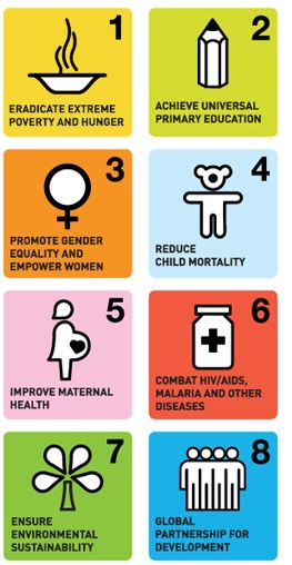 “The eight Millennium Development Goals (MDGs) – which range from halving extreme poverty to halting the spread of HIV/AIDS and providing universal primary education, all by the target date of 2015 – form a blueprint agreed to by all the world’s countries and all the world’s leading development institutions. They have galvanized unprecedented efforts to meet the needs of the world’s poorest.” (Source: United Nations)